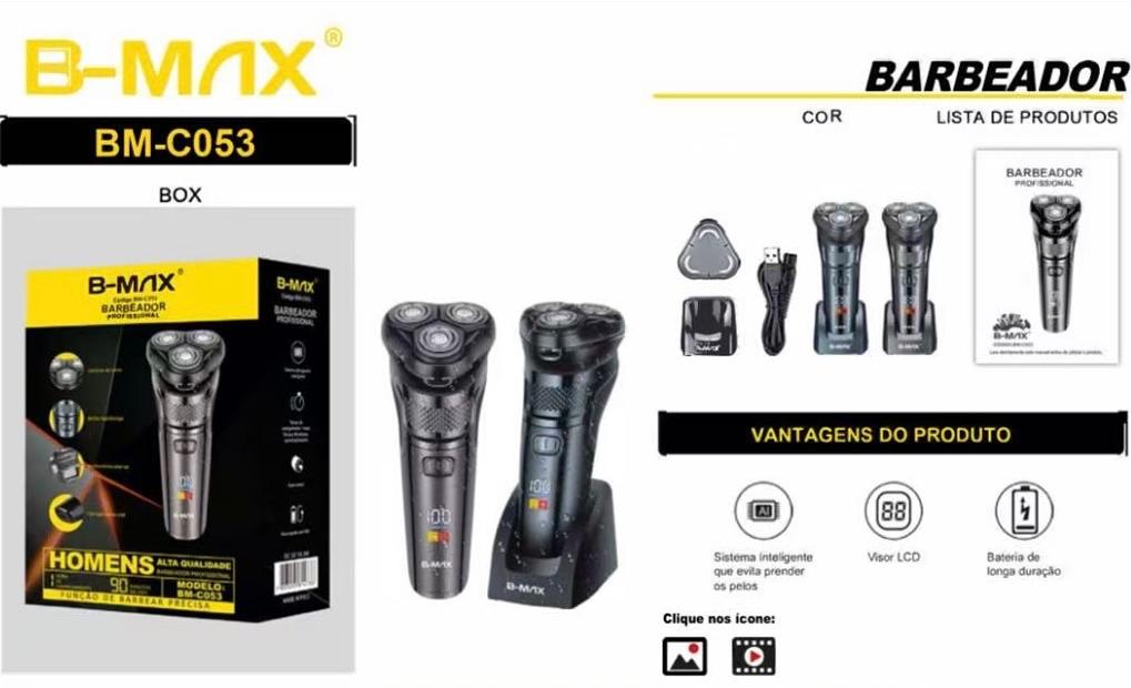 Barbeador profissional com digital com base de carregamento DC 5v 1A 3W BMC053