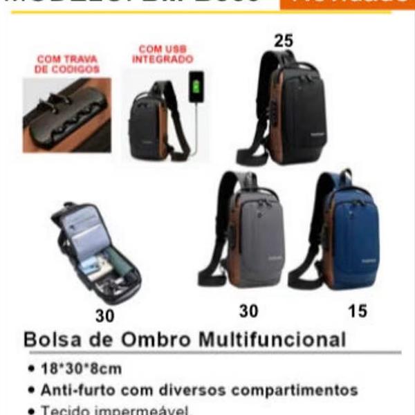 Bolsa de Ombro Multifuncional 15 •18*30*8cm • Anti-furto com diversos compartimentos BMB566