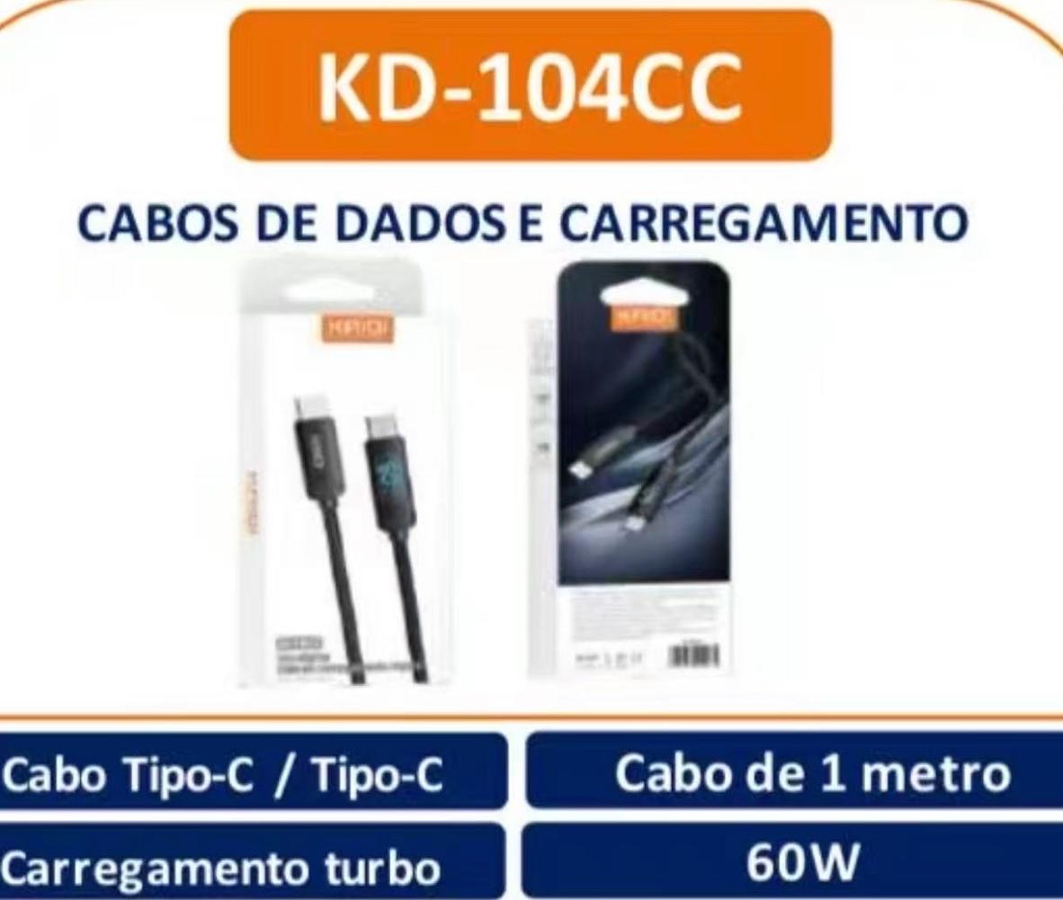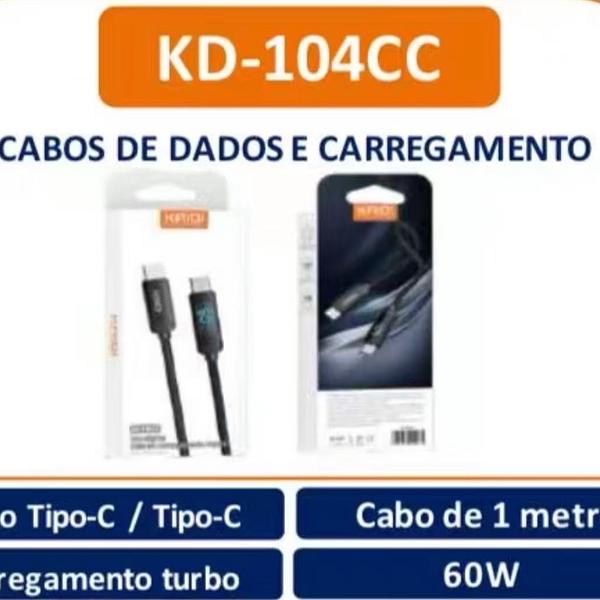 Cabo tipo c /tipo c 60W 1M com digital KD104CC