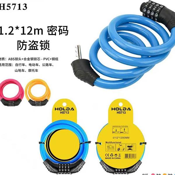 Cadeado para bicicleta com 2 chaves 1.2M com numero de senha H5713