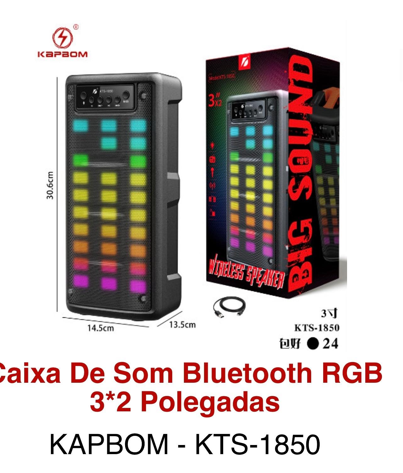 Caixa De Som Bluetooth RGB 3*2 Polegadas KTS-1850