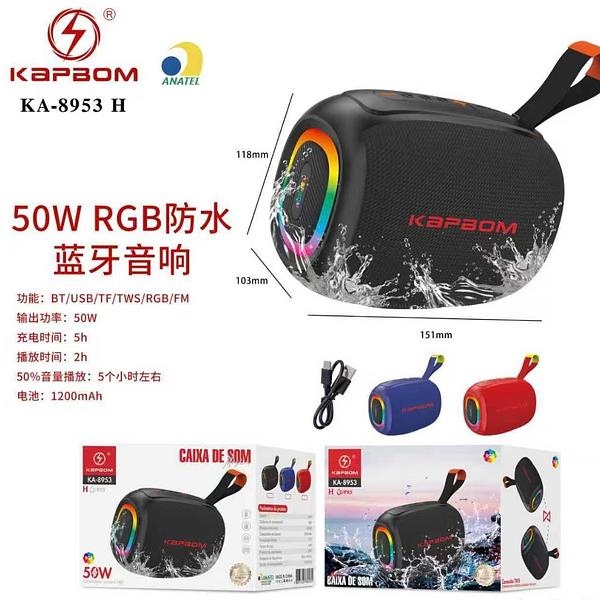 Caixa de som Bluetooth USB cartão memória com RGB 50W prova água KA8953H