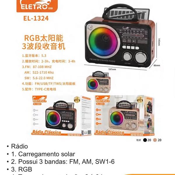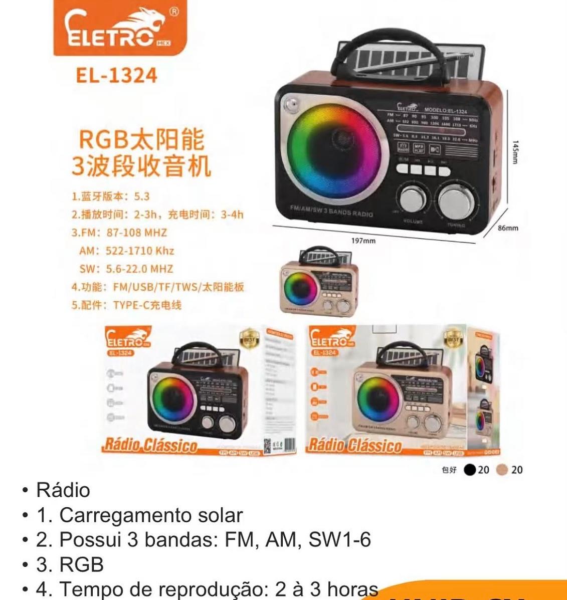 Rádio Clássico Bluetooth USB cartão memória com RGB EL-1324