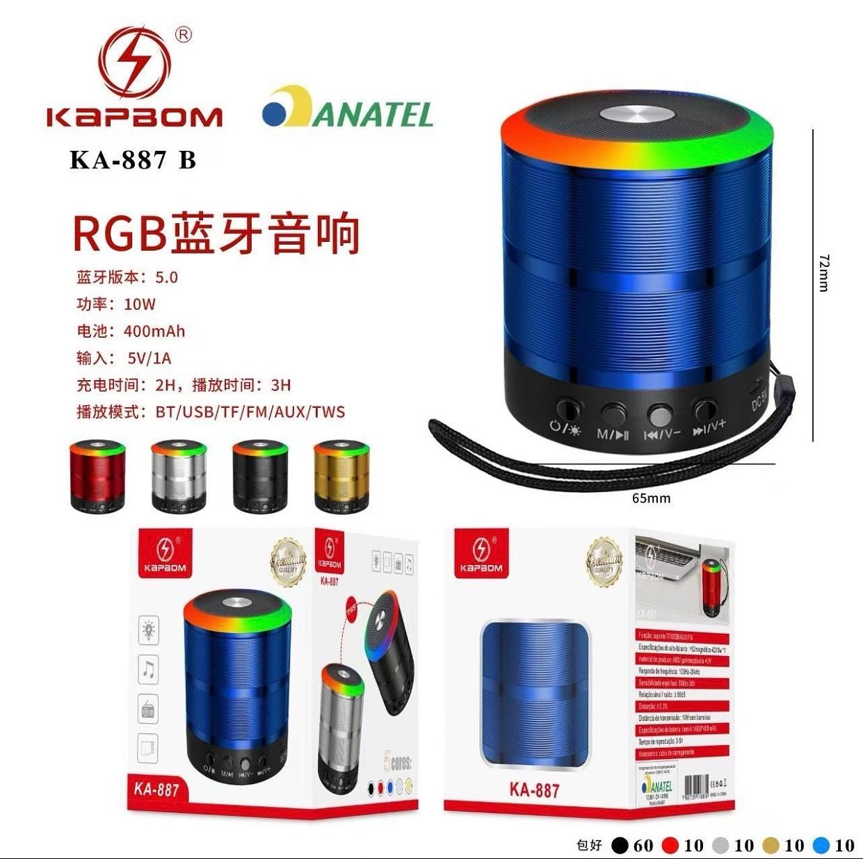 Caixa de som Bluetooth USB cartão memória com RGB KA887B