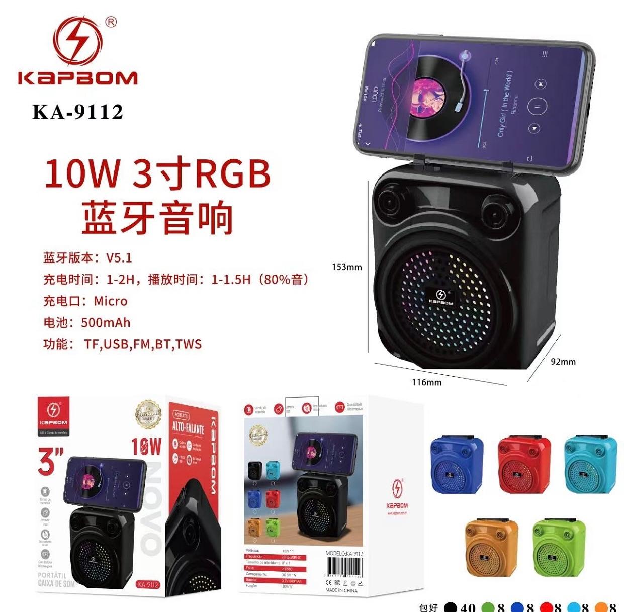 Caixa de som Bluetooth USB cartão memória com rgb KA9112