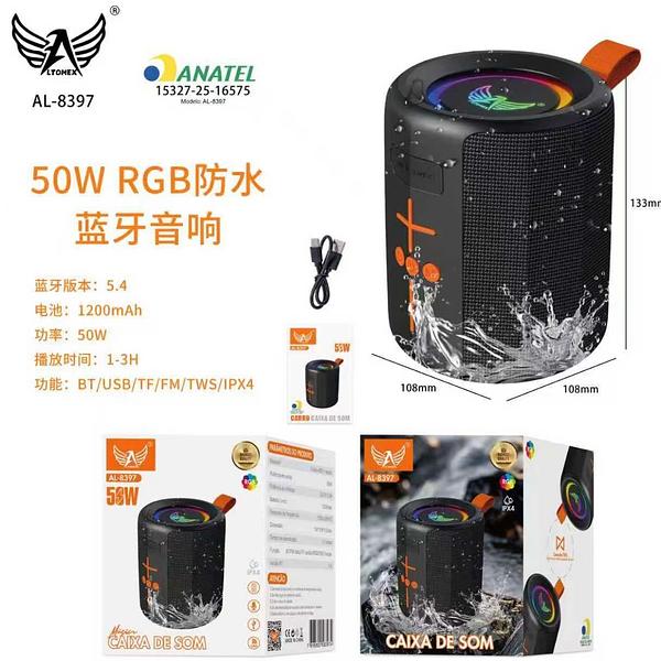 Caixa de som Bluetooth USB cartão memória com RGB prova água AL8397
