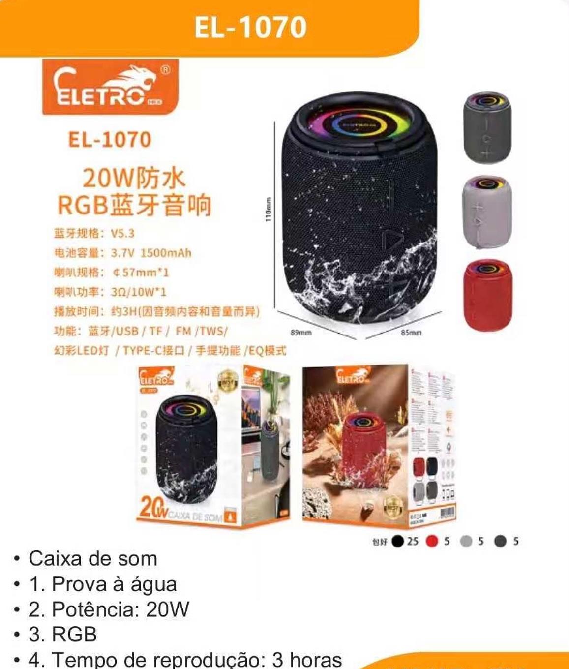 Caixa de som Bluetooth USB cartão memória prova água EL1070