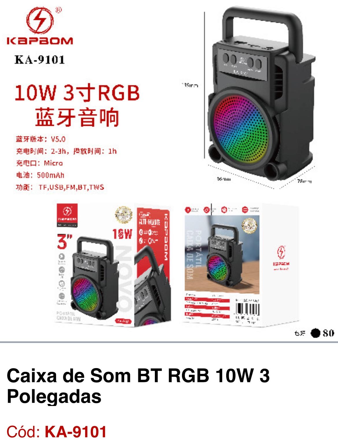 Caixa de Som BT RGB 10W 3 Polegadas KA-9101