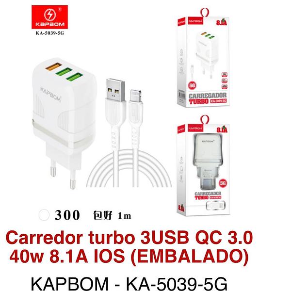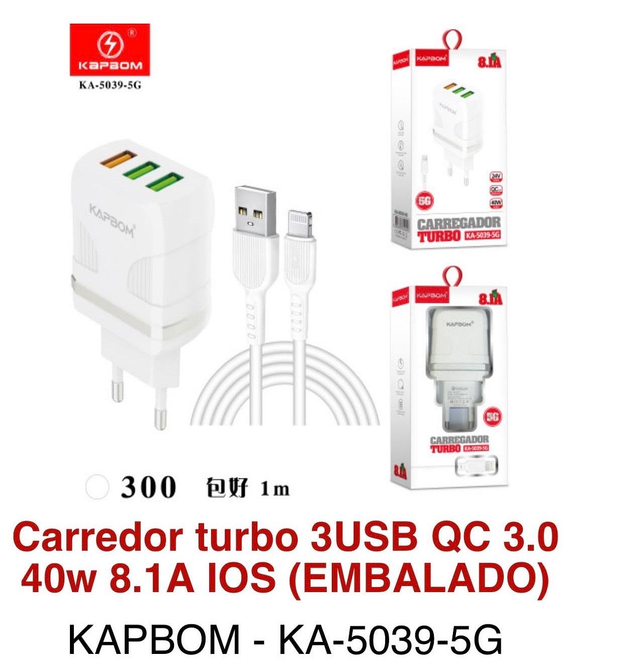 Carregador iphone turbo 3USB QC 3.0 40w 8.1A IOS