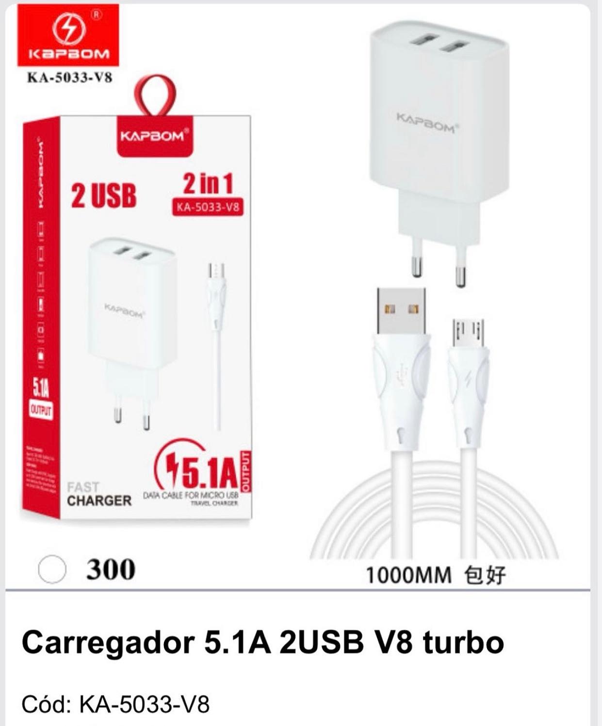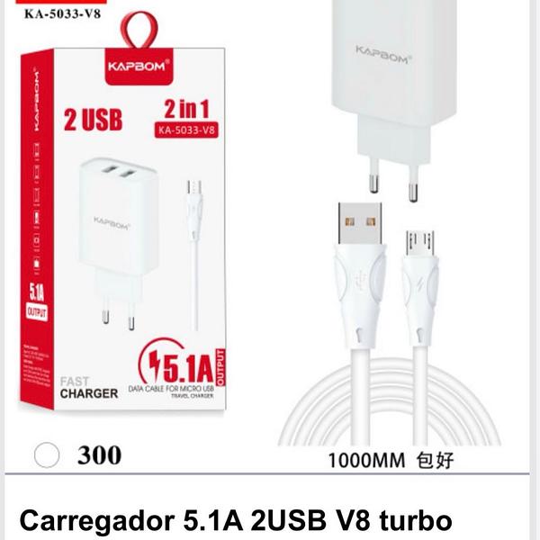 Carregador 5.1A 2USB v8 turbo KA5033V8