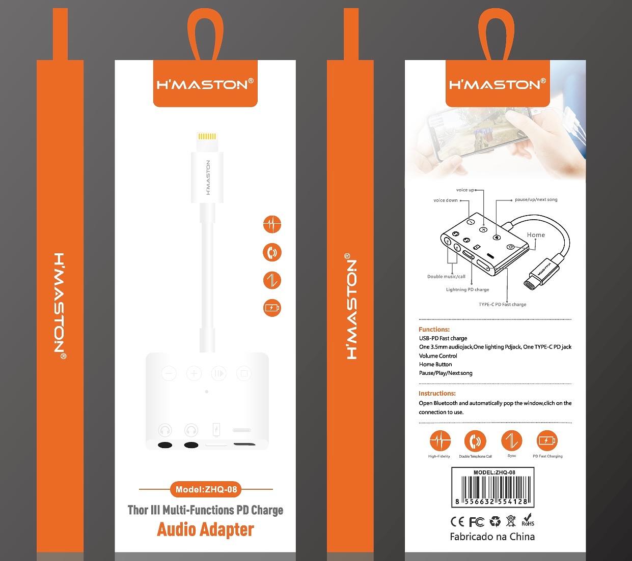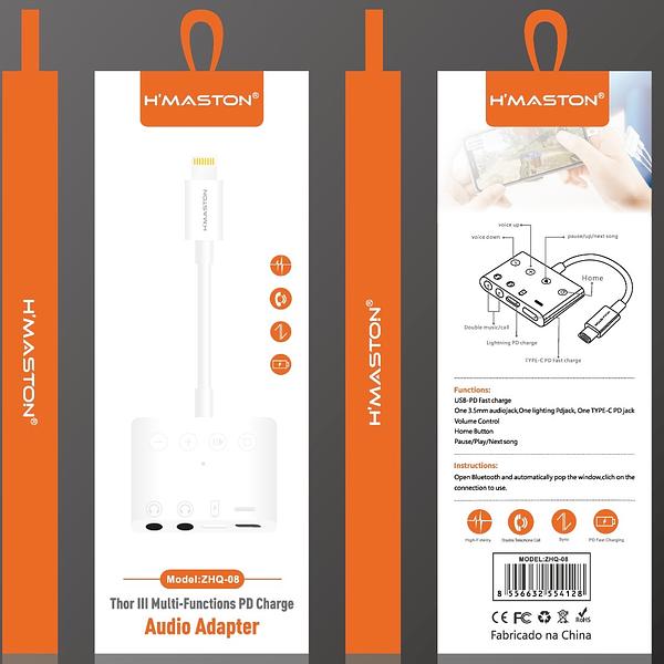 Carregador + Adaptador 3 Em 1 iPhone C/ 2 Entradas P2 Novo ZHQ08