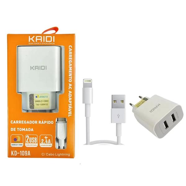 Carregador para Iphone lightning Turbo 2.4A 2USB KAIDI KD-109A
