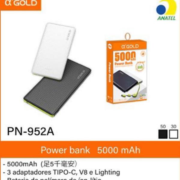 Carregador portátil 5milMAH com adaptadore iPhone e tipo c PN952A