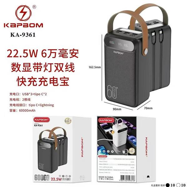 Carregador portátil com digital USB*3+tipo C:tipo Ctlightning 60000mAh KA9361