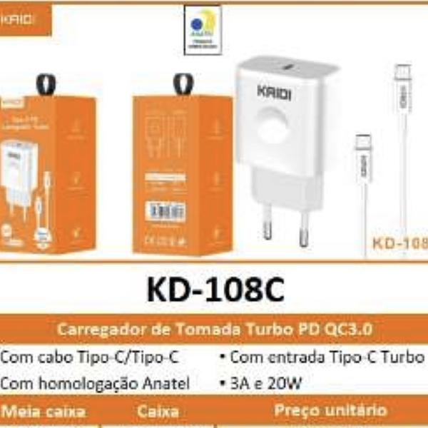 Carregador tipo c 3A 20W Cabo tipo c/tipo c Kaidi KD-108C