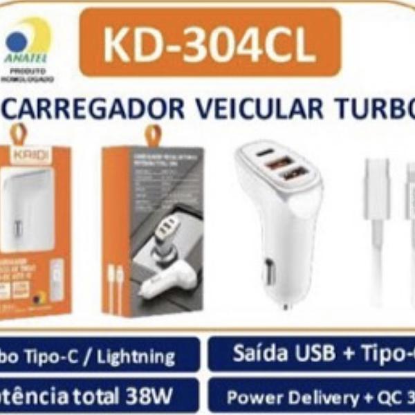 CARREGADOR VEICULAR TURBO Cabo Tipo-C / LightningPotência total38W KD-304CL
