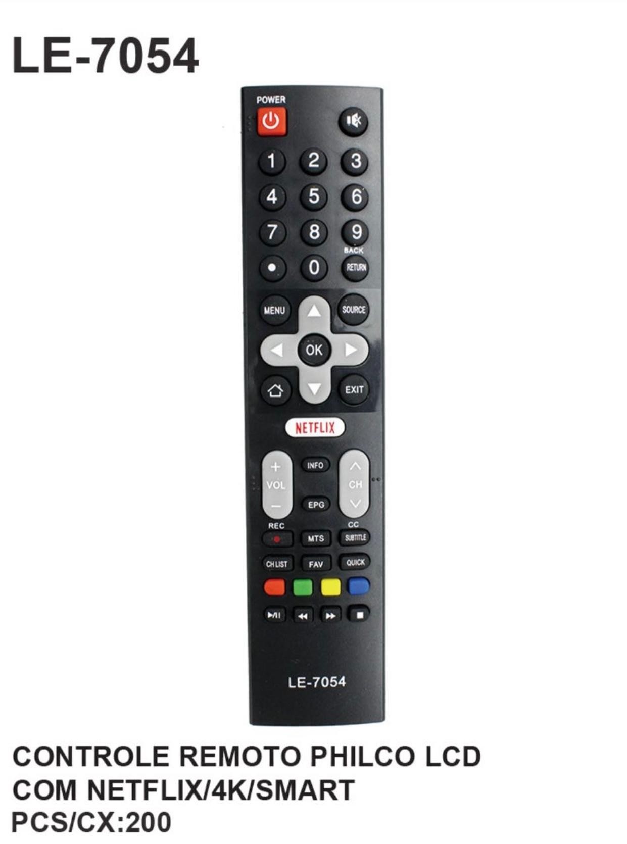 Controle remoto Philco smart LCD 4K NeTFLIX/LE 7054