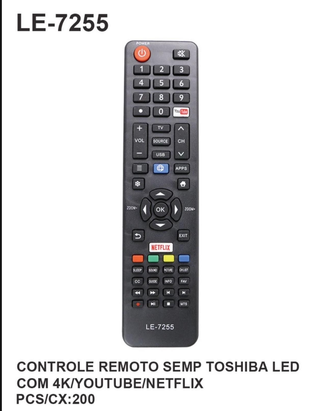 Controle remoto semp Toshiba LED com 4K NeTFLIX/YouTube LE7255