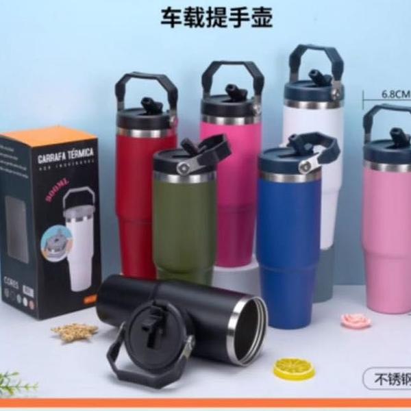 Copo térmico 900 ml aço inox com tampa para automóveis