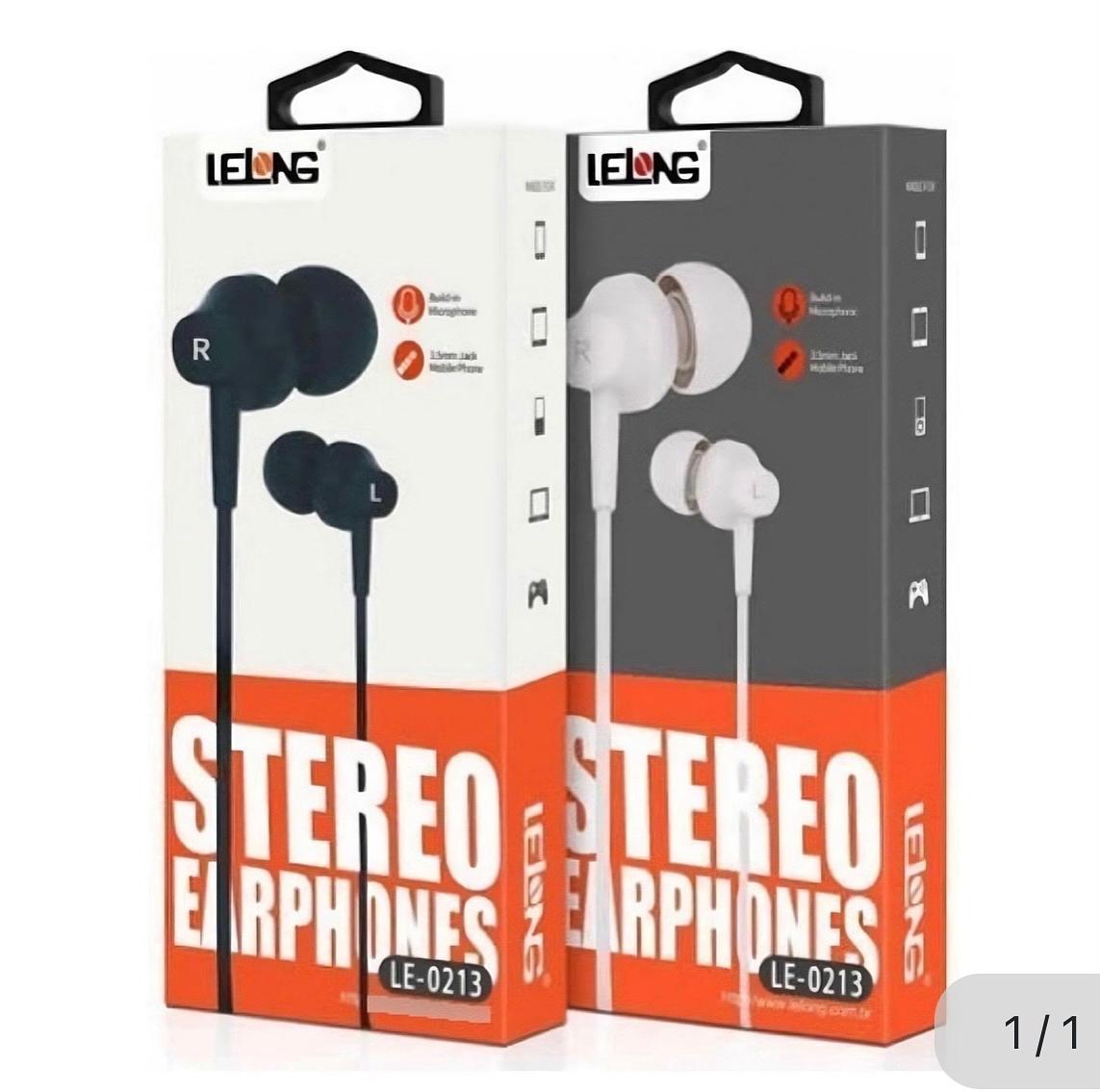 fone com fio com borrachinha lelong 0213 caixa fechado com 200pcs