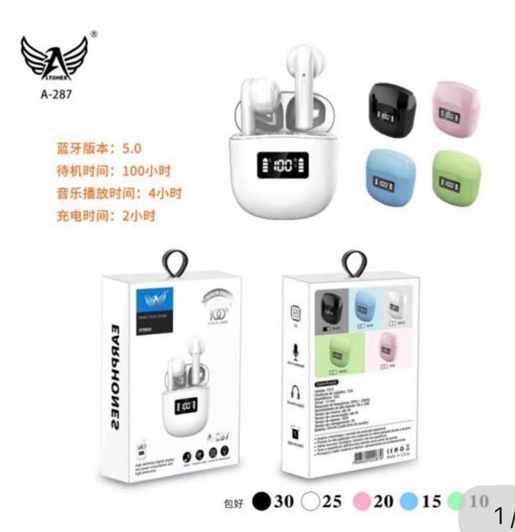 Fone sem fio 5.0 com digital A287 Com 100pcs