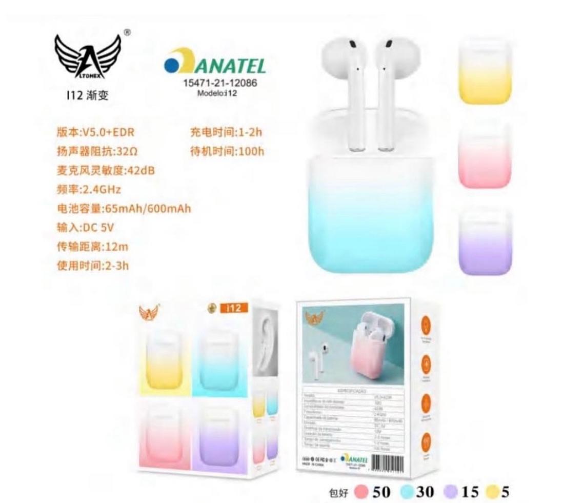 COD: Fone sem fio Bluetooth i12colorido