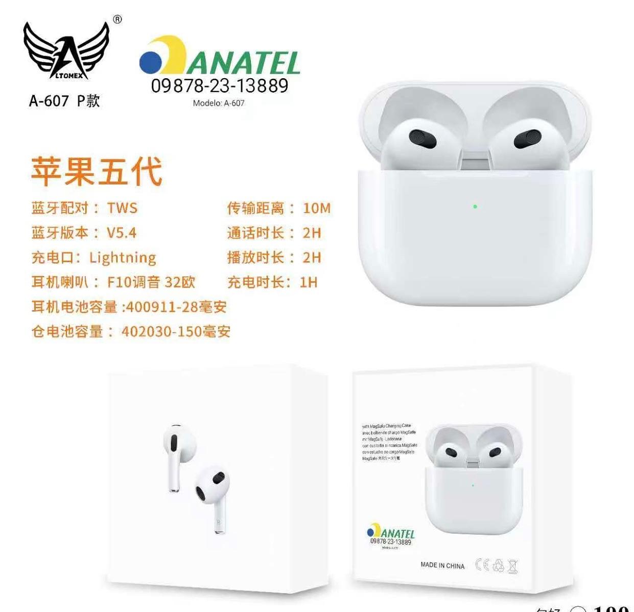 Fone sem fio bluetooth sem borrachinha caixa fechado com 100pcs A607P