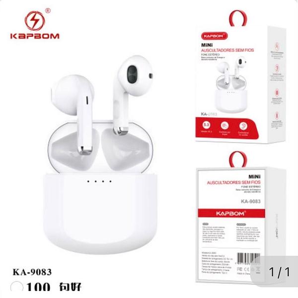 Fone sem fio Bluetooth sem borrachinha KA9083 Caixa fechado com 100pcs