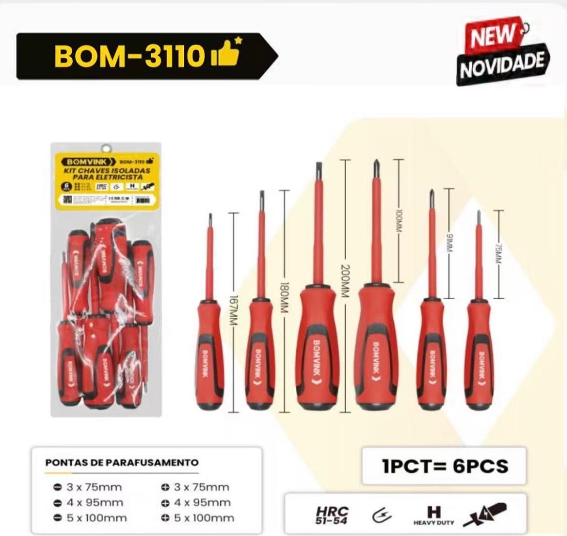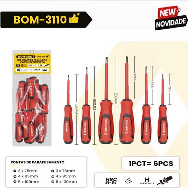 KIT CHAVES ISOLADAS PARA ELETRICISTA BOM3110