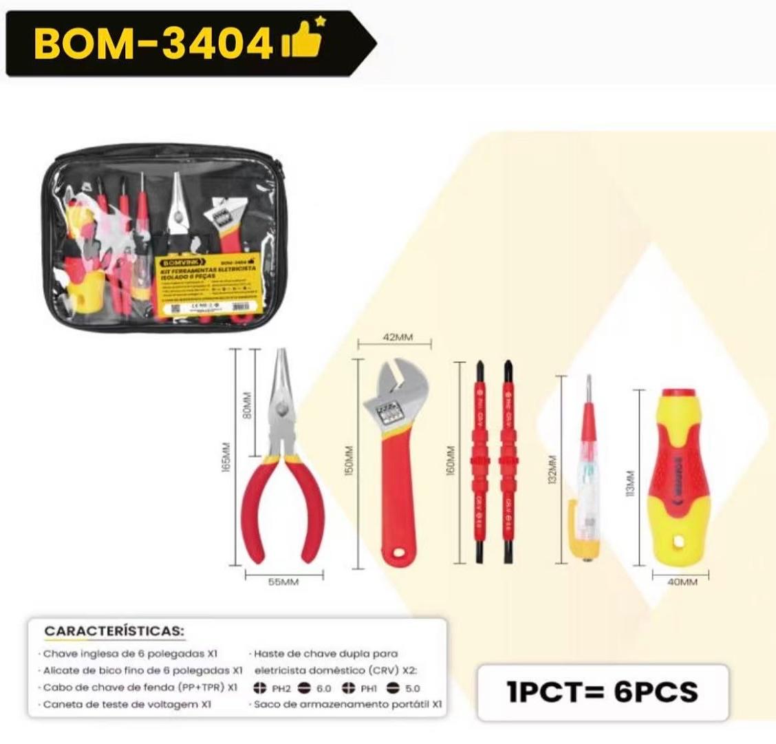 KIT FERRAMENTAS ELETRICISTA ISOLADO 6 PEÇAS BOM3404
