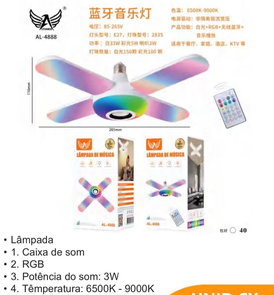 Lâmpada com caixa de som Bluetooth Com RGB AL4888