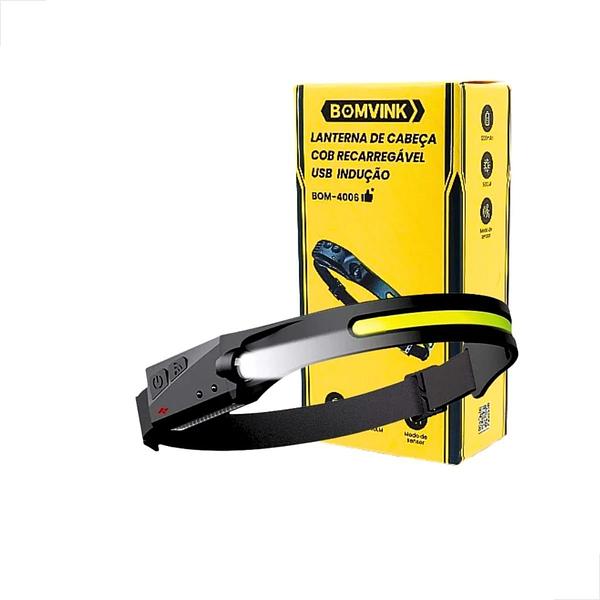 Lanterna de cabeça cob recarregável USB indução BOM-4006
