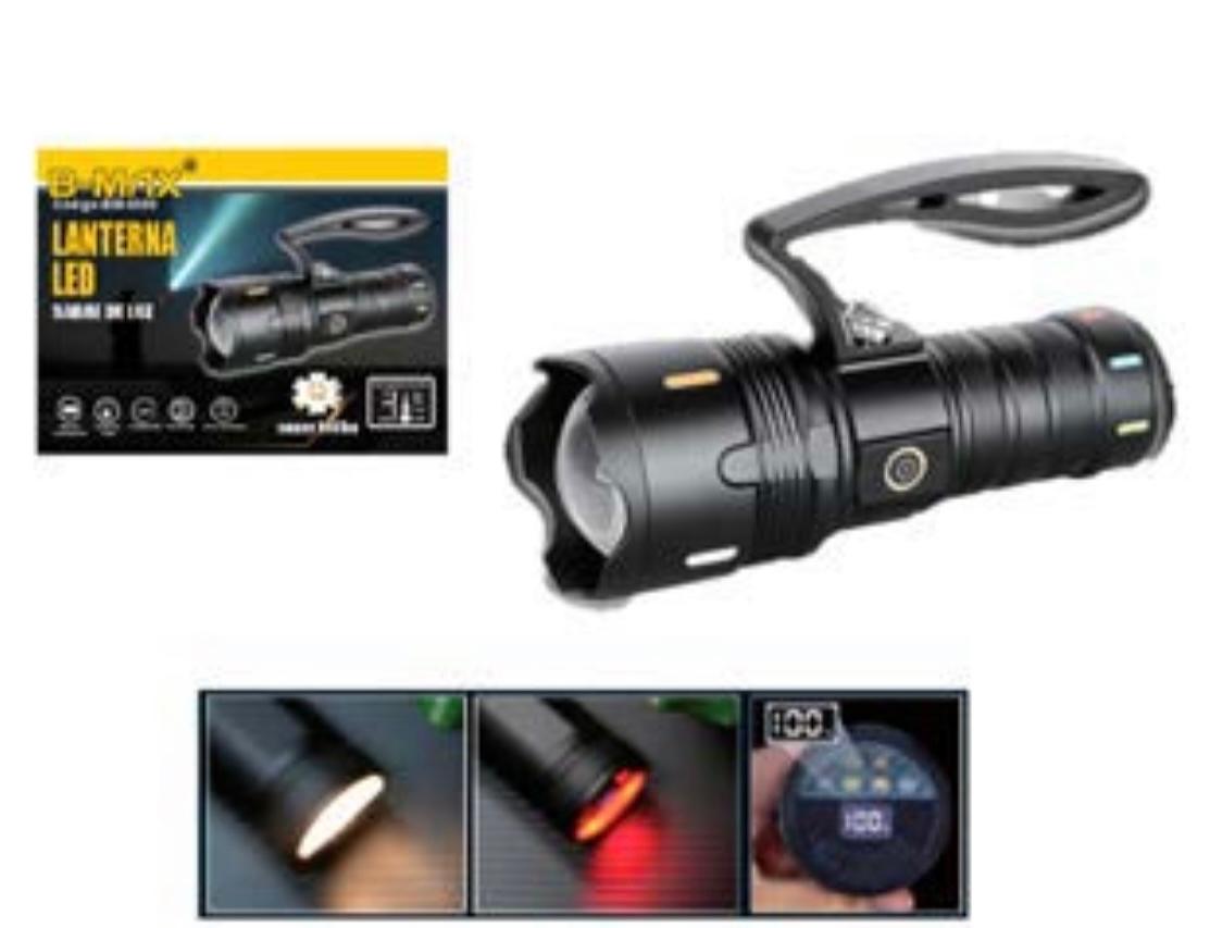 Lanterna LED • Potência: 30W • Temperatura de cor: 7000K • Fluxo Luminoso: 3000Lm • USB-C Recarregável • com PowerBank BM8550