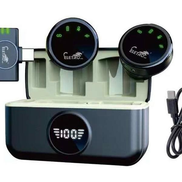 Microfone Sem Fio Profissional tipo c com 2microfone com digital Com Estojo Magnético Recarregável Botão Redondo