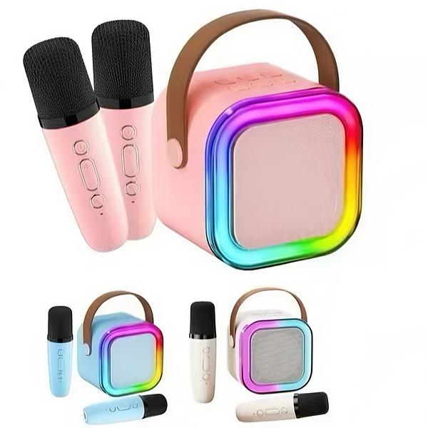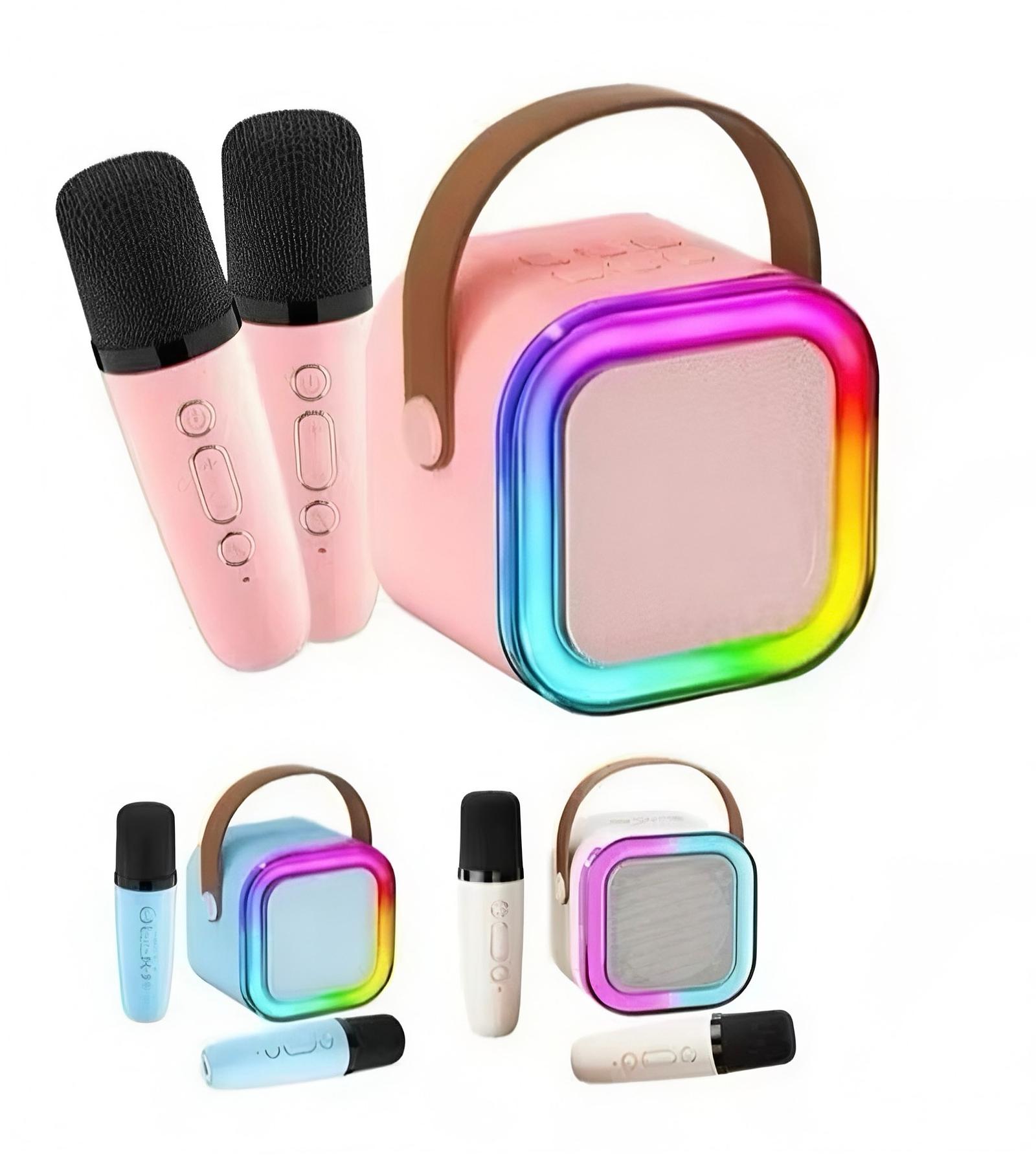 Mini Caixa De Som Com 2Microfone Sem Fio Bluetooth Karaokê com luz