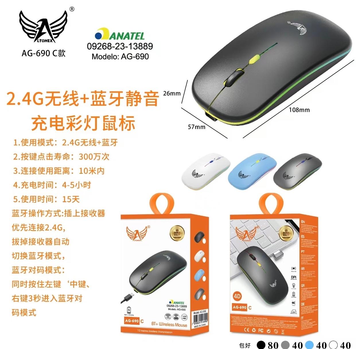 Mouse sem fio com Bluetooth AG690C