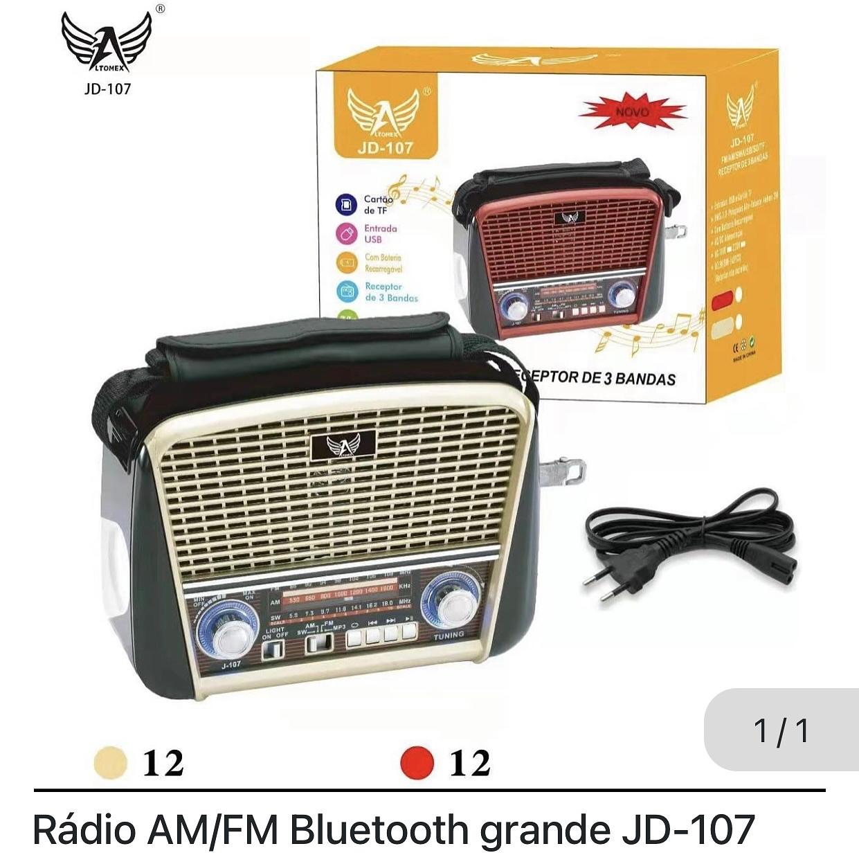 Rádio AM/FM Bluetooth grande JD-107 com 24pcs