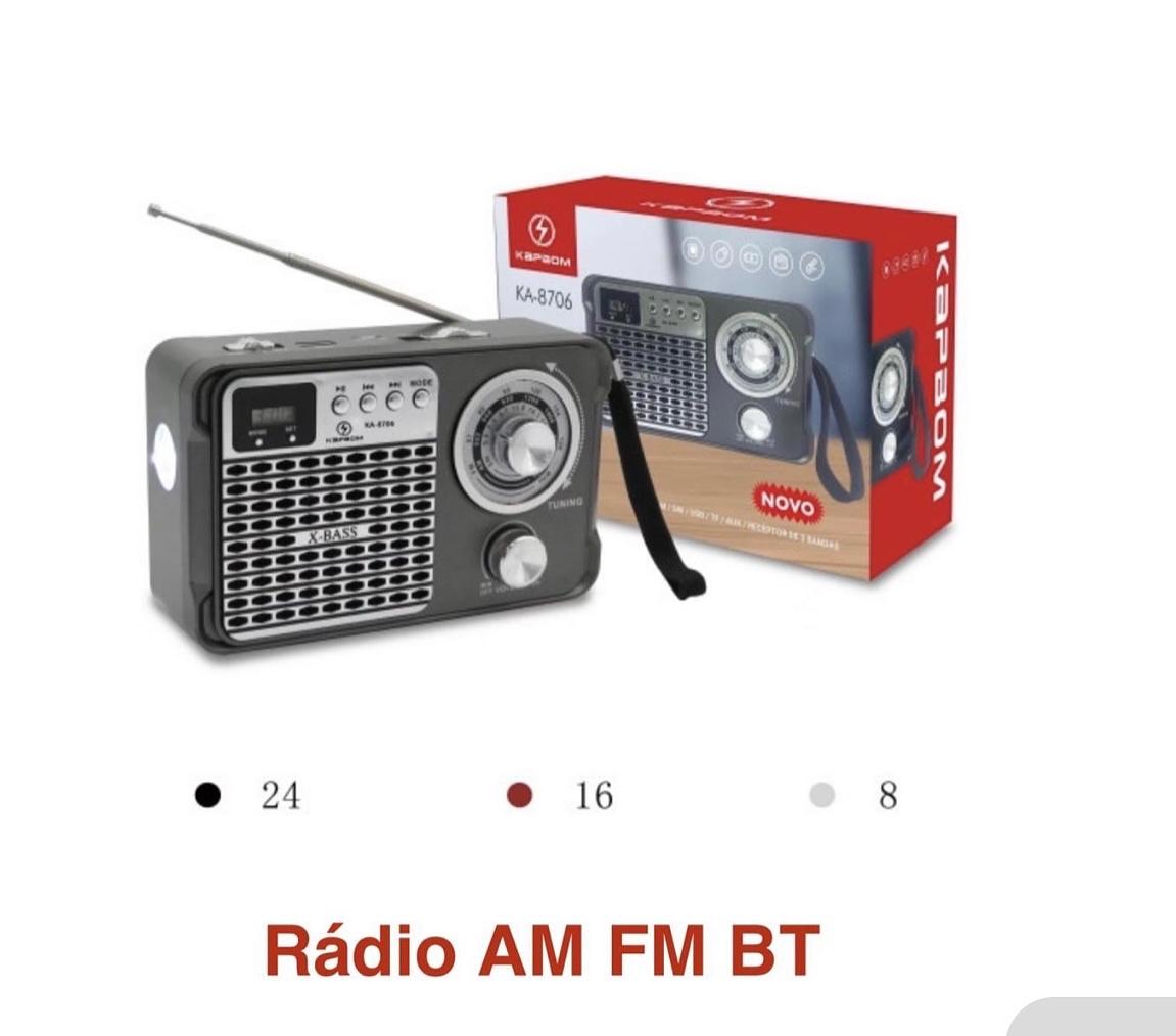 Rádio FM AM Bluetooth KA-8706 Com 48pcs