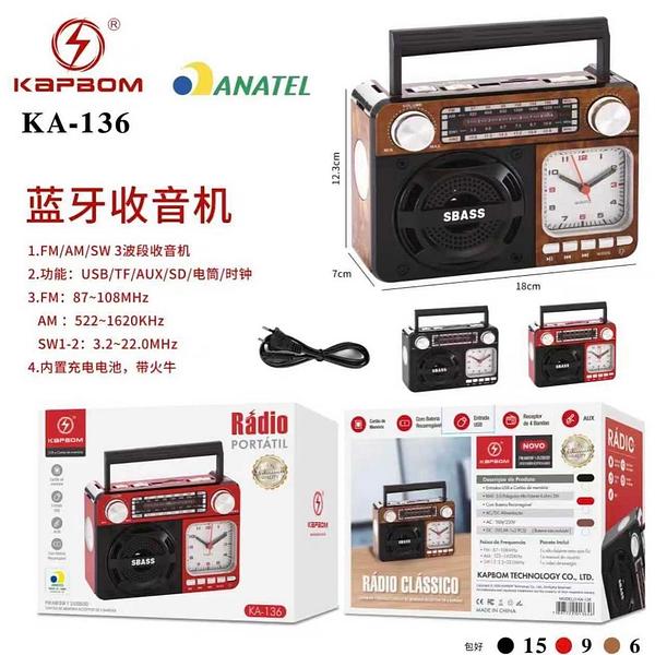 Rádio FM AM Bluetooth KA136 com 30pcs
