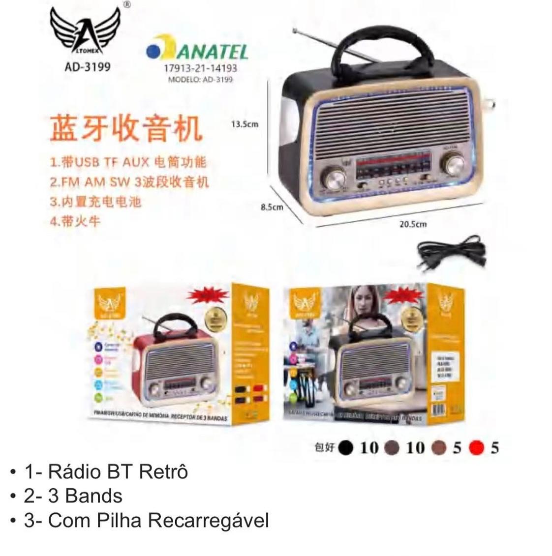 Rádio FM AM com bluetooth cartão memória USB AD3199