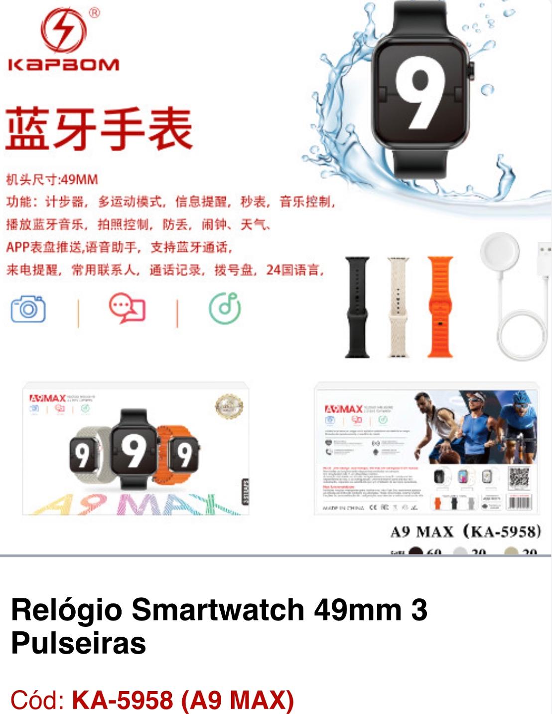 Relógio Smartwatch 49mm 3 Pulseiras KA-5958 (A9 MAX)