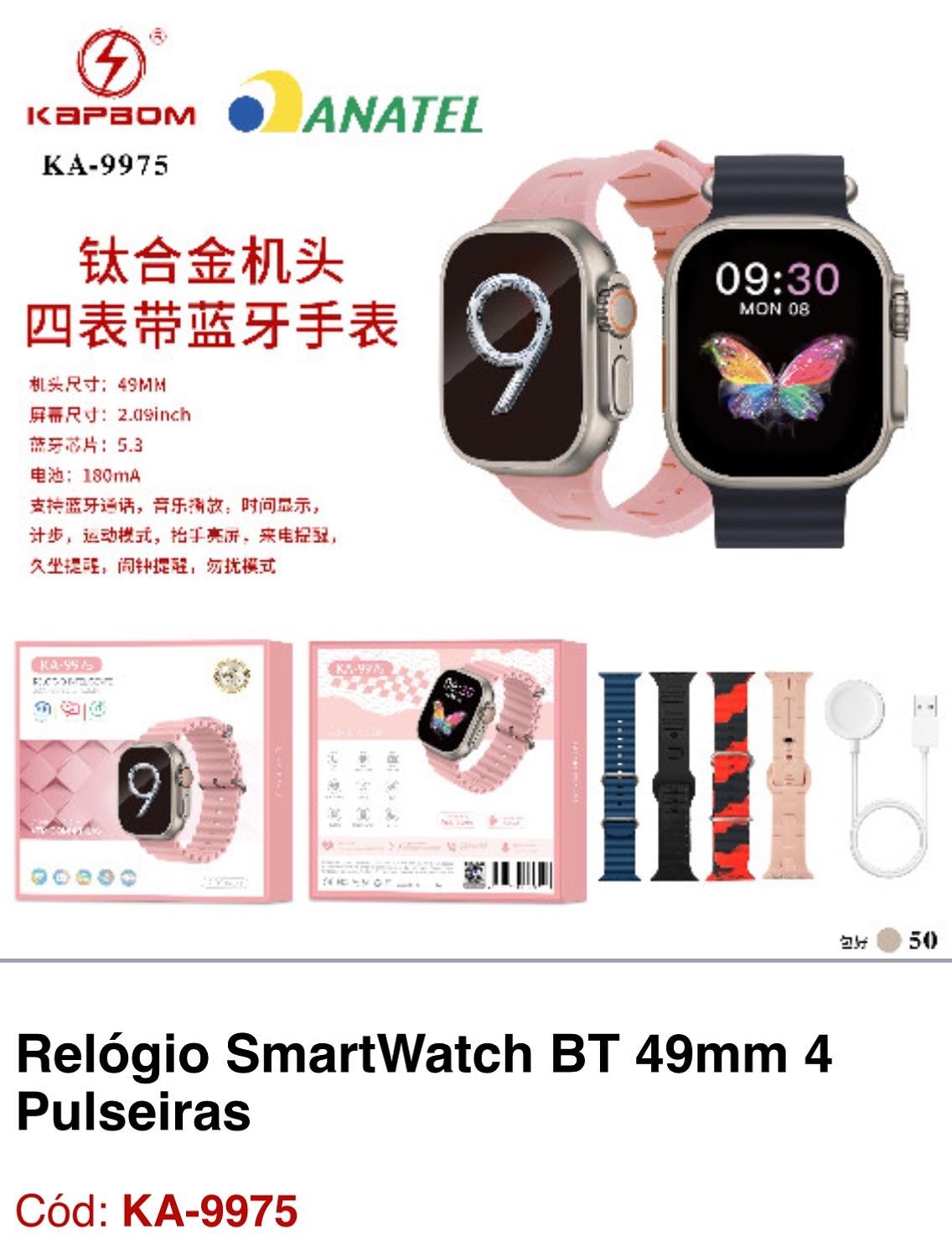 Relógio SmartWatch BT 49mm 4 Pulseiras KA-9975