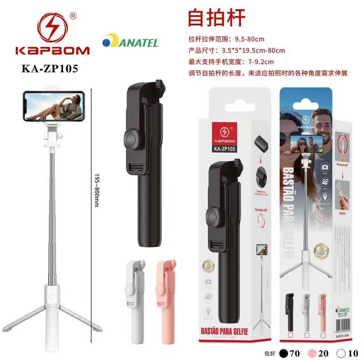 Bastão de Selfie C/ Tripé e Controle BT 80cm Cod:KA-2P105